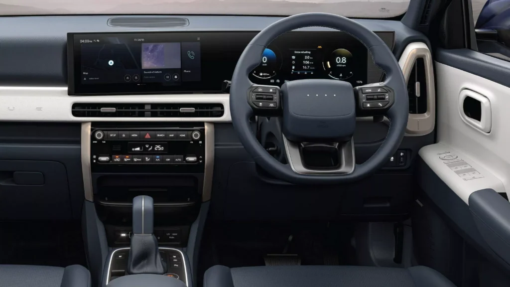 - شاشة منحنية تمتد من أمام السائق إلى منتصف لوحة القيادة، وتتضمن شاشتين مقاس 12.3 بوصة.